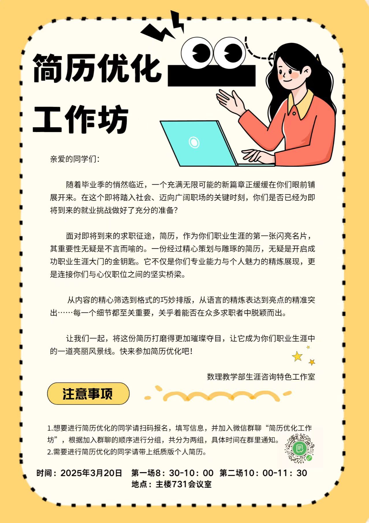 【生涯指导系列活动】数理教学部简历优化工作坊圆满收官